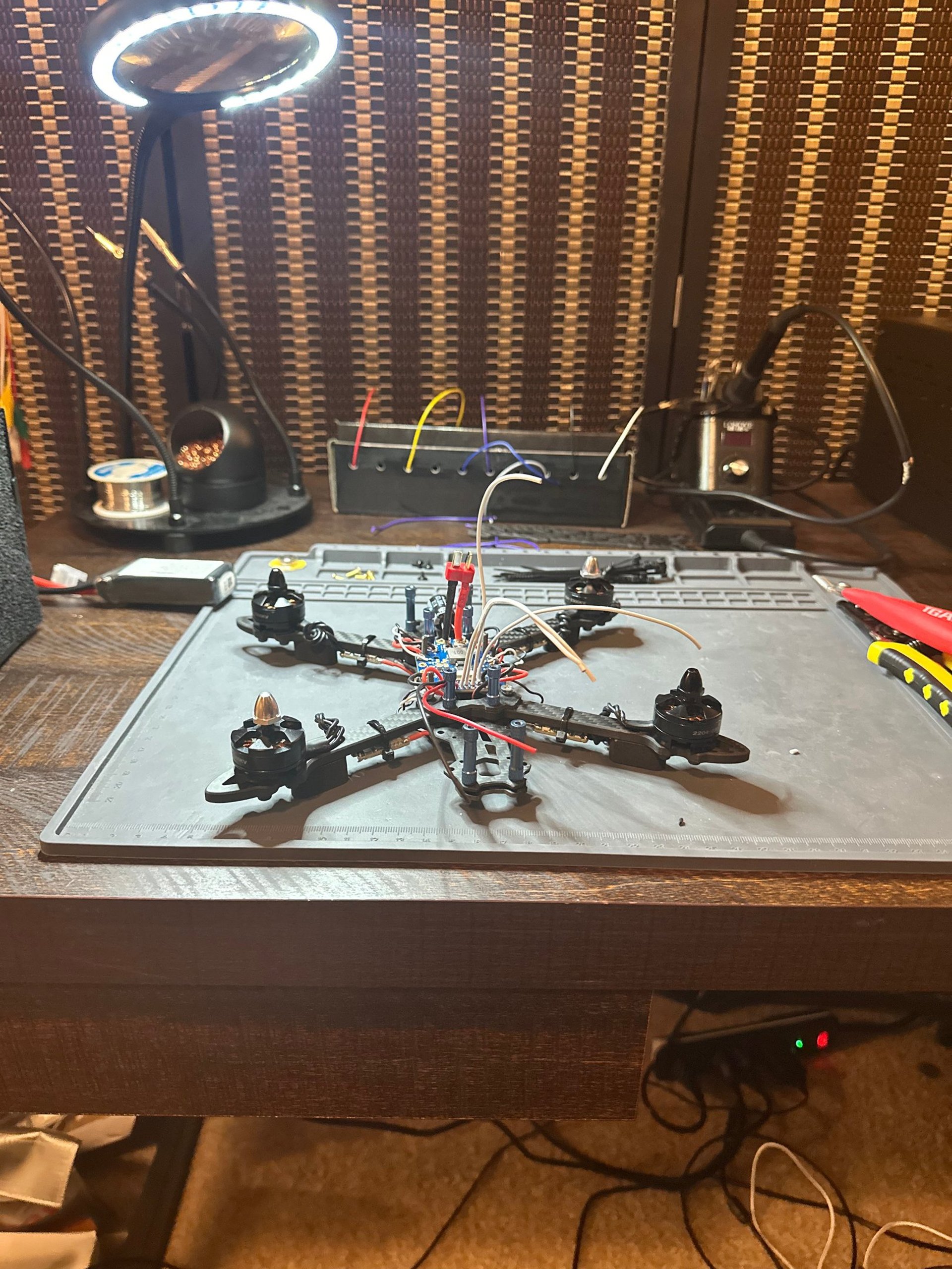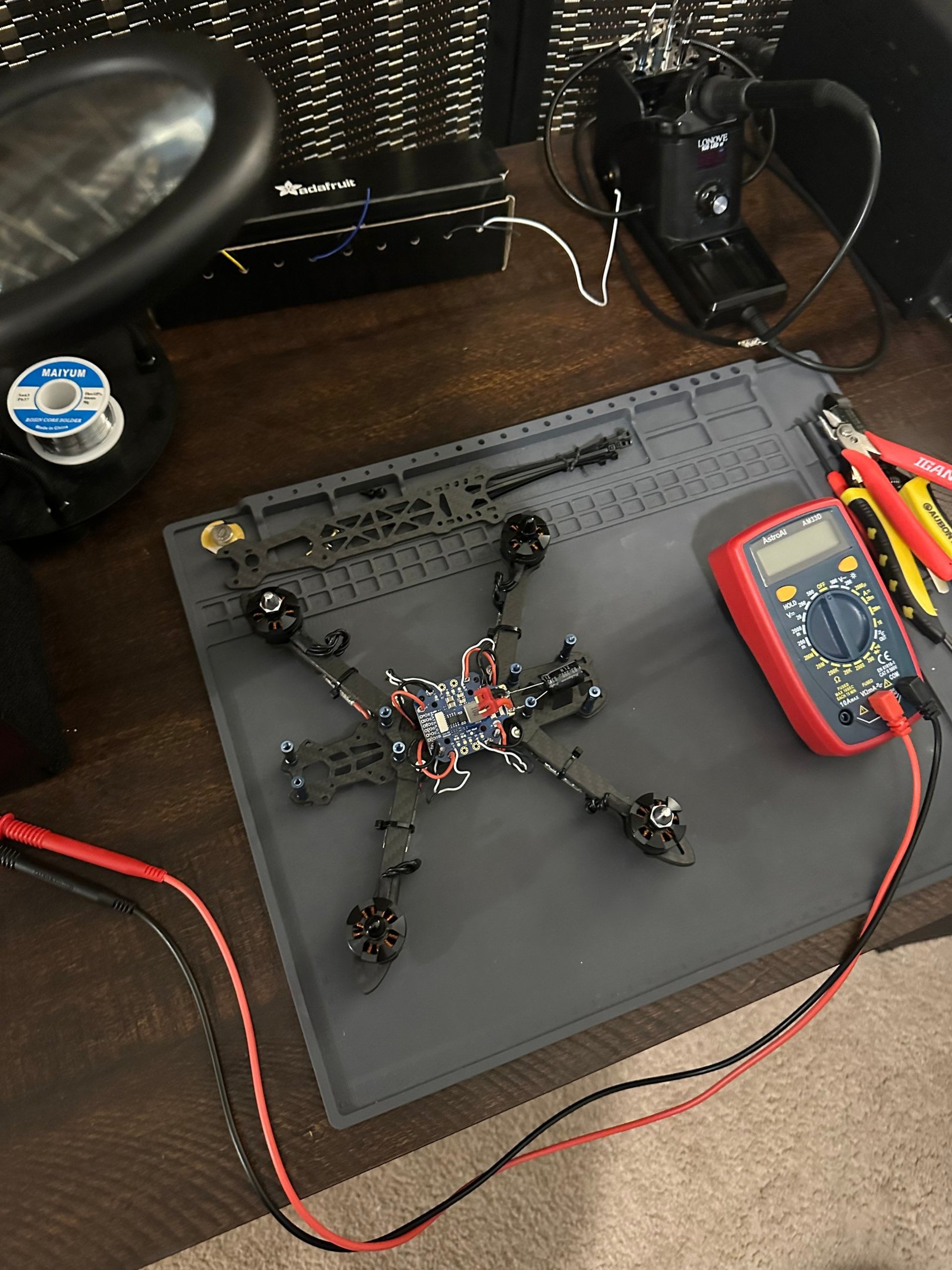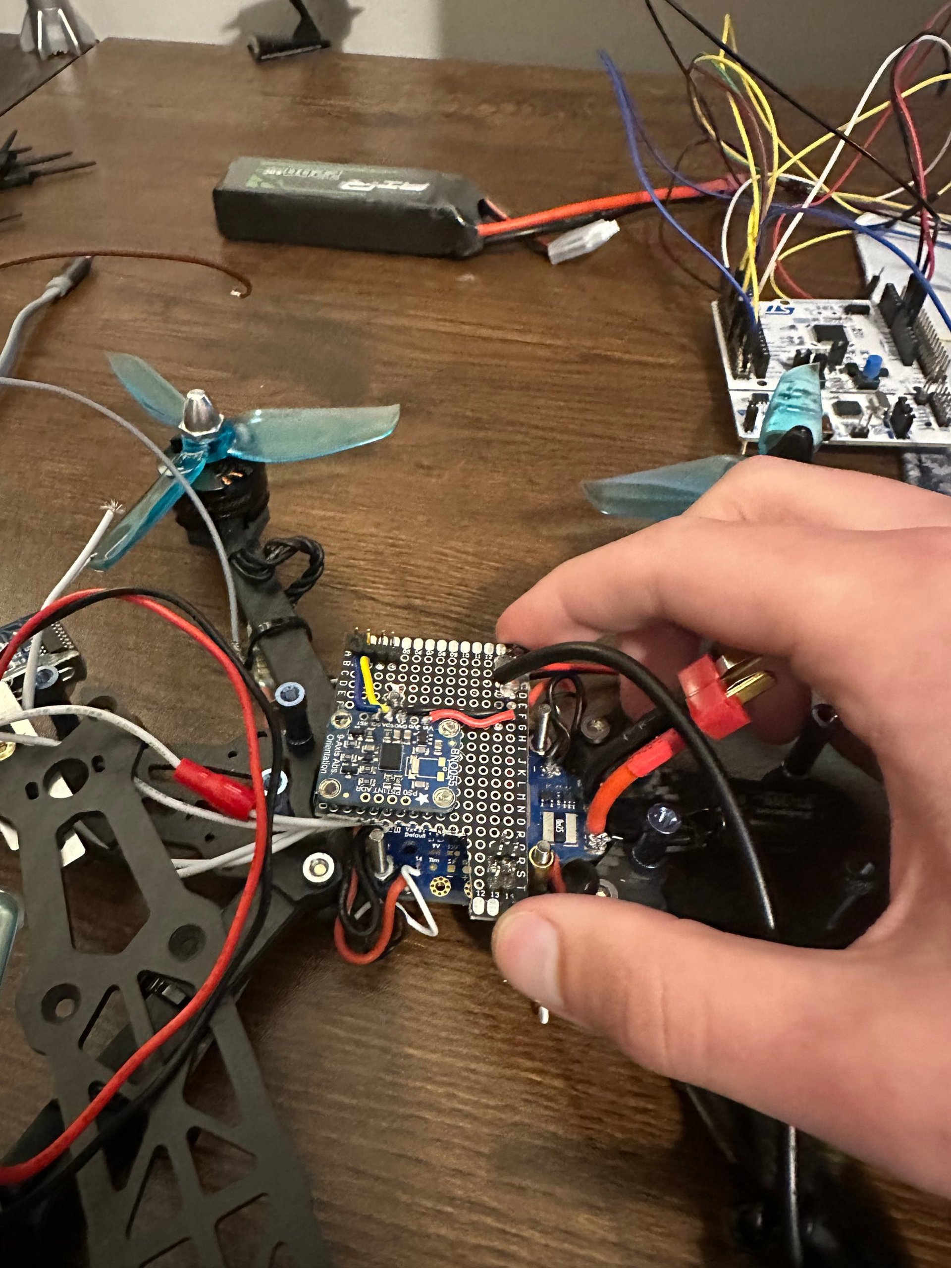 While running a motor test, I learned that carbon fiber is conductive by shorting the filtering capacitor to the frame of the drone. This short caused a lot of smoke, and if it wasn't for my power delivery board's diode I would've fried all my ESC's.